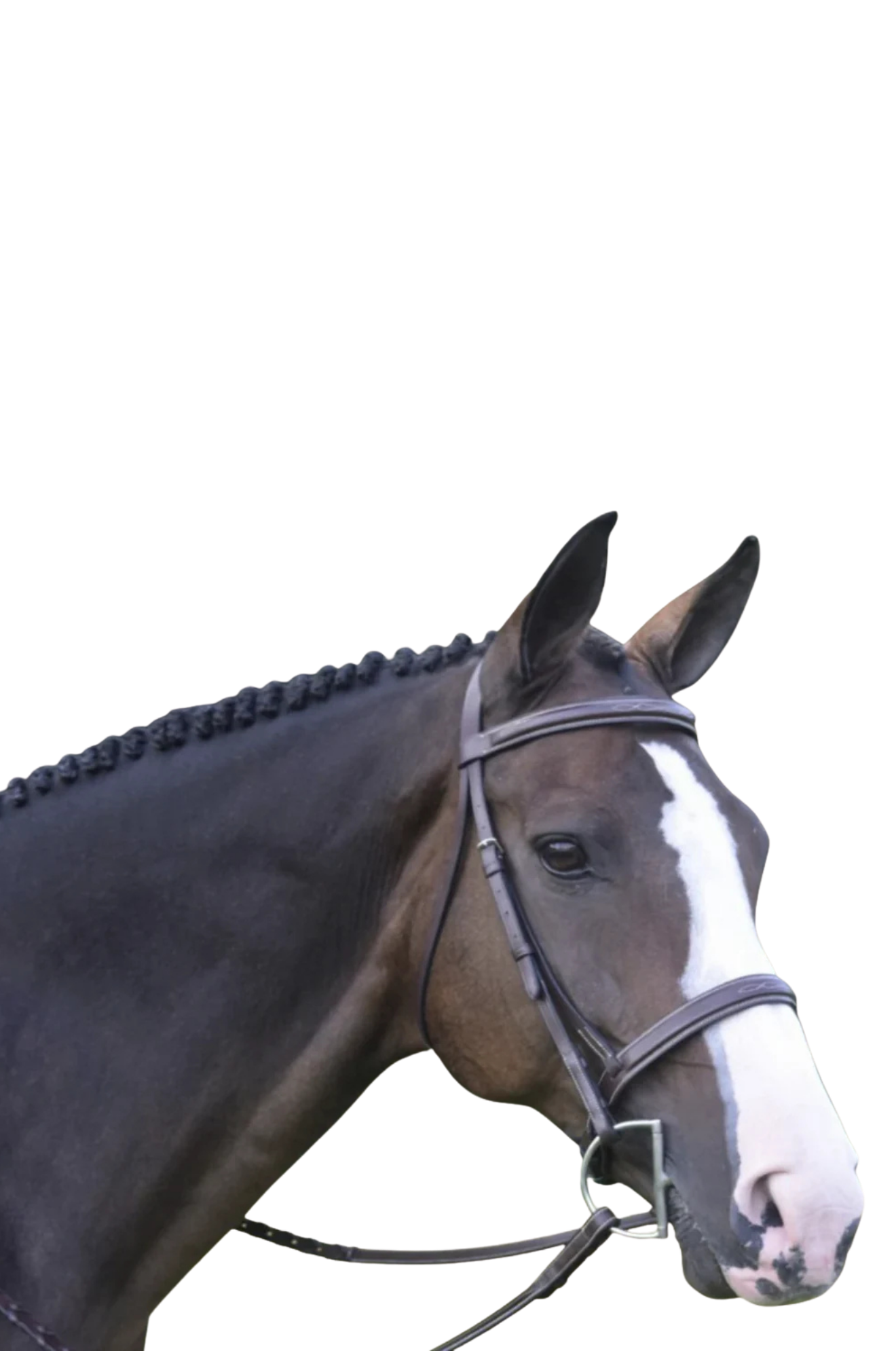 The Black Oak Spruce Hunter Bridle offers a classic look with a 1 1/8” square raised fancy stitched noseband, a matching 3/4″ browband, and ½” cheek pieces. The Spruce design is low profile and is not padded. Comes complete with 5/8” fancy stitched square raised Laced Reins.  All hardware is stainless steel, with hook stud ends, and a roller buckle on the noseband. This bridle is made in the finest drum-dyed leather.