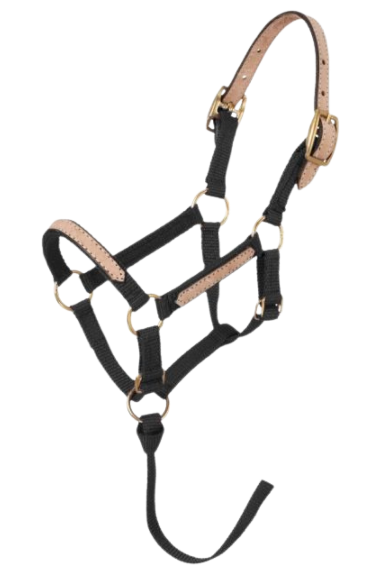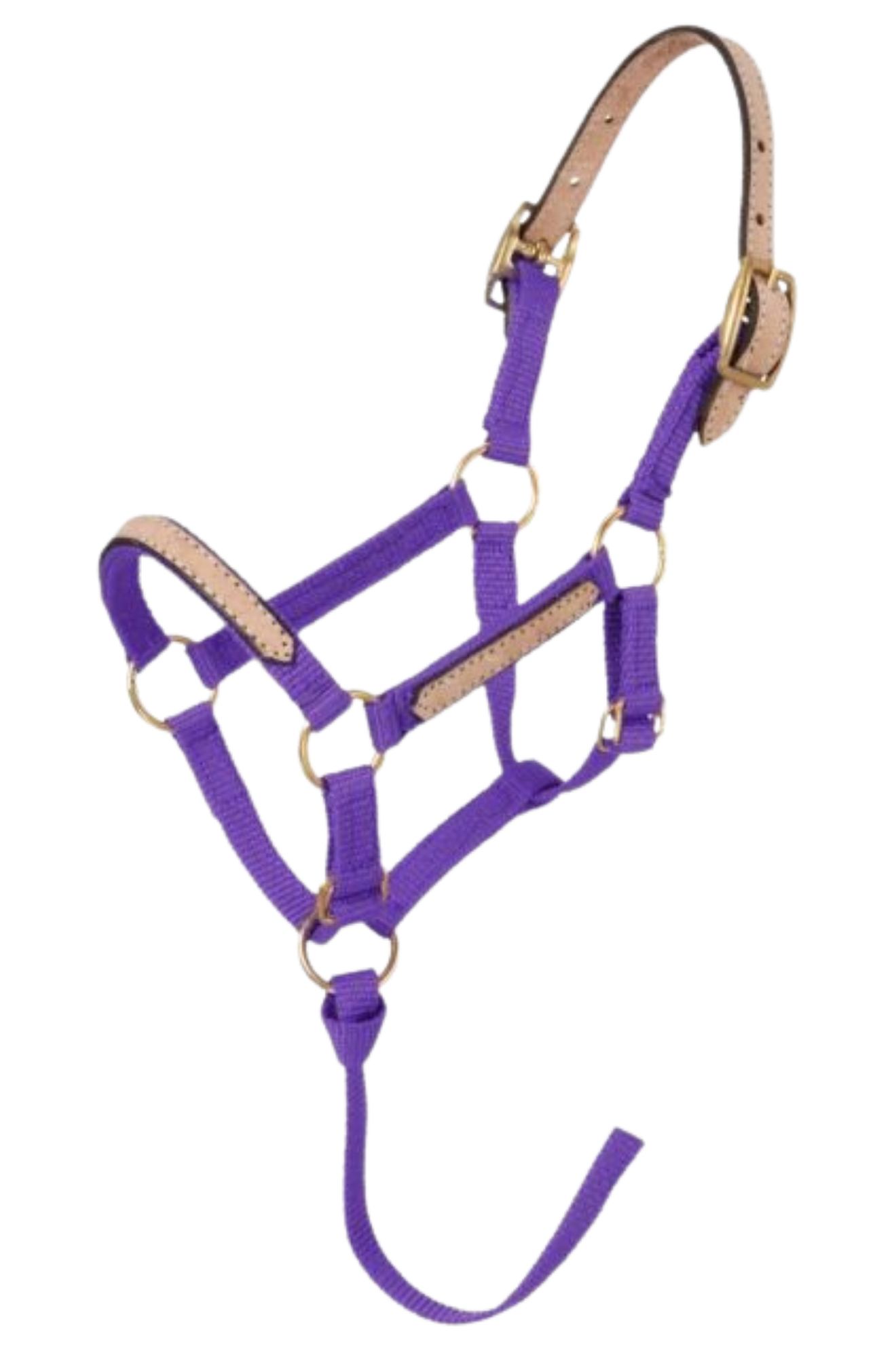 Have some peace of mind with this miniature nylon halter with breakaway crown piece. Constructed of durable double-ply nylon with attractive leather overlays. The single ply leather crown is designed to break under stress, reducing your worries when your mini is tied or turned out. Adjustable slide buckles at nose and crown for best fit.