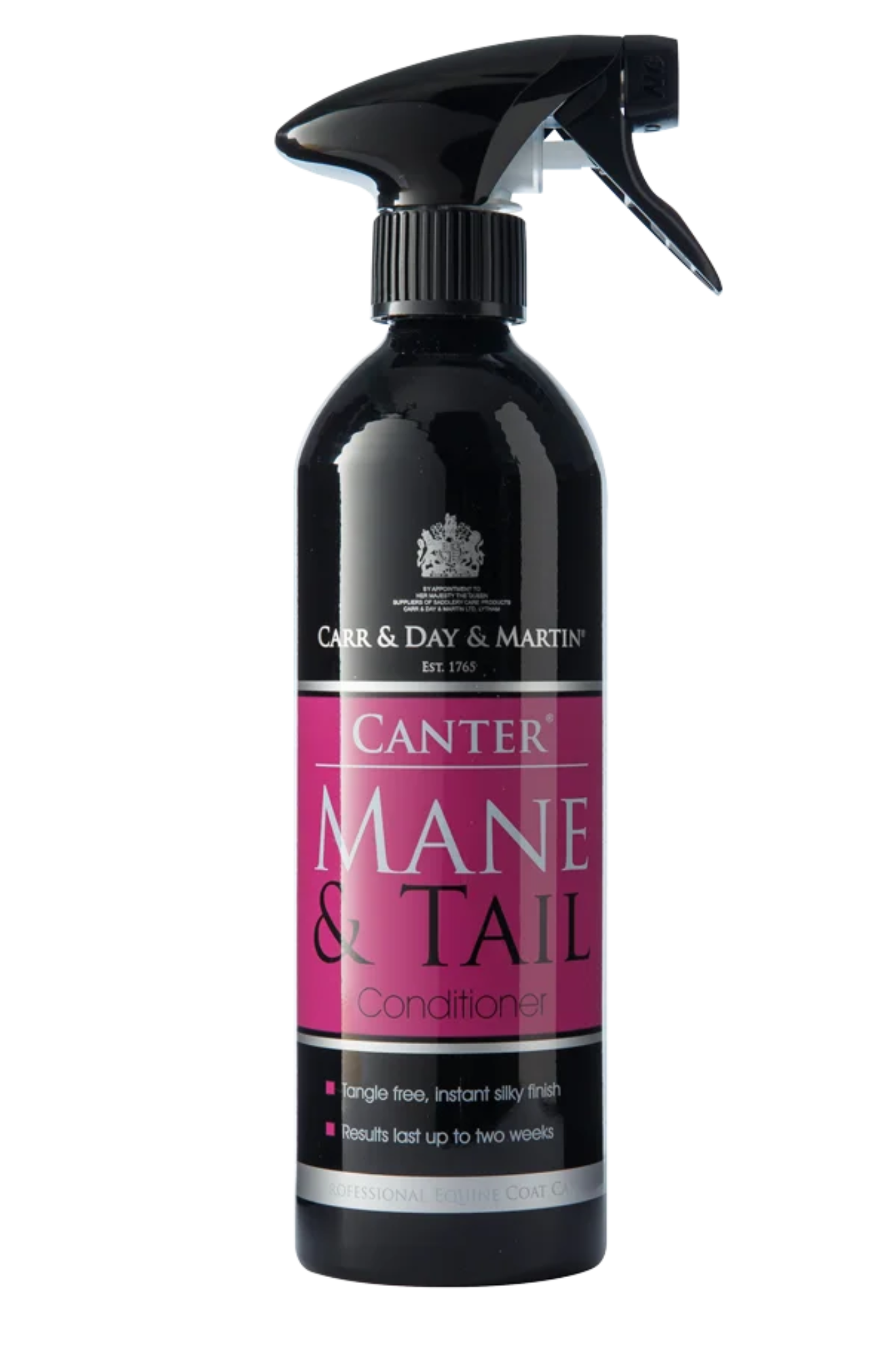 Canter® Mane and Tail Conditioner is never equalled in its ability to keep the mane and tail sleek, tangle-free and luxuriously soft. This powerful detangler is our most popular product and is a favourite around the world. This original, long-lasting conditioner makes grooming quick and easy, and reduces hair breakage all while leaving an immaculate, oil free shine.