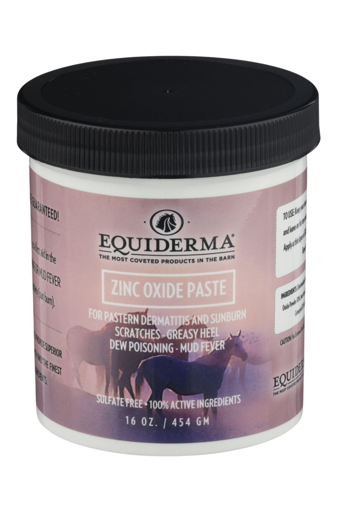 Equiderma Zinc Oxide Paste, sister product to our flagship Equiderma Skin Lotion, contains the same active ingredients in a zinc oxide paste form. It’s a powerful and potent treatment in the fight against pastern dermatitis, also known as scratches, greasy heel, dew poisoning, or mud fever. Its antibacterial, anti-fungal and anti-dermatophyte properties help you overcome the heartbreak and frustration of scratches.