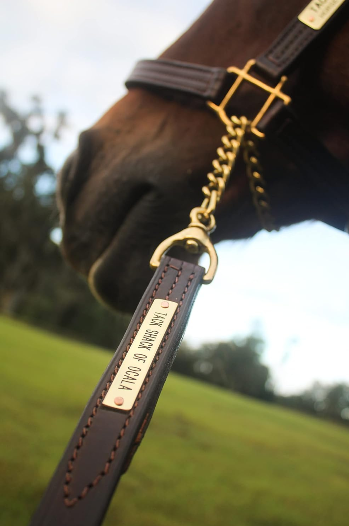 - CUSTOM ENGRAVED NAME PLATES: Our leather leads come with an optional engraved name plate. Choose from one or two lines. All plates match the hardware on your halter- Solid Brass. Engraved clear and bold. Perfect for a personal touch, identification, or a special message!