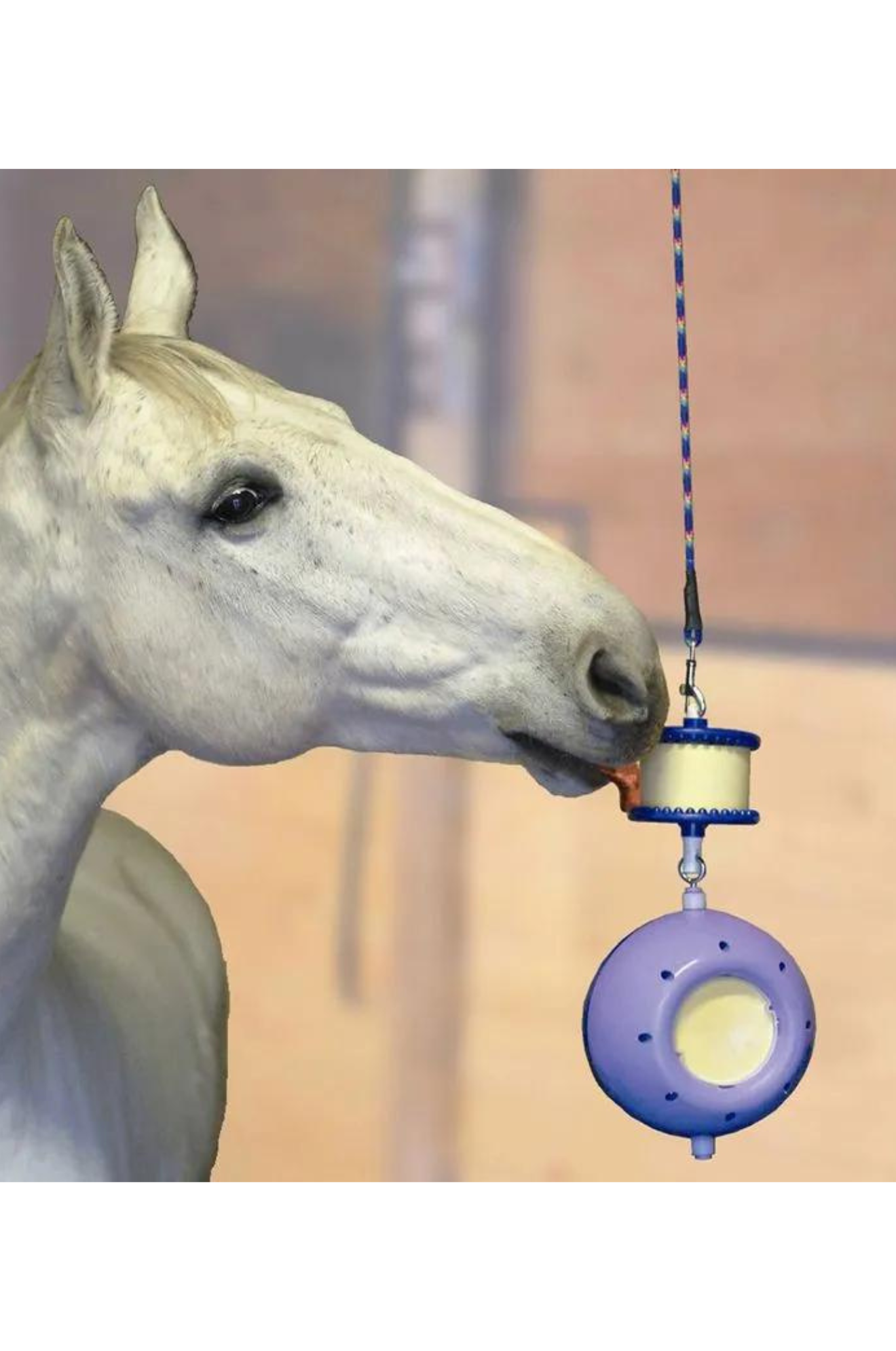 Directions: Hang from beam away from walls, center should be level with horse's withers. As horse plays with toy, holder will move, making horse work harder for reward.