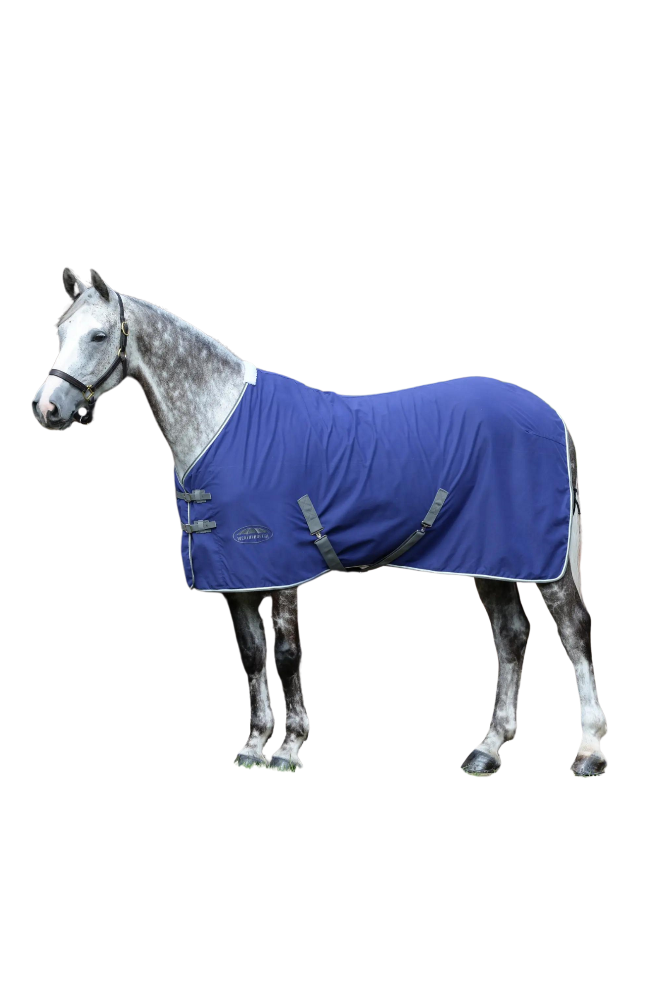 Perfect for all year round use to keep your horse clean and stylish for competitions. The WeatherBeeta Cotton Show Sheet With Surcingles II Standard Neck has a stylish and durable 100% cotton drill outer with nylon lined shoulders to help prevent rubbing and stretching, adjustable twin buckle front closure, low cross surcingles and tail cord.