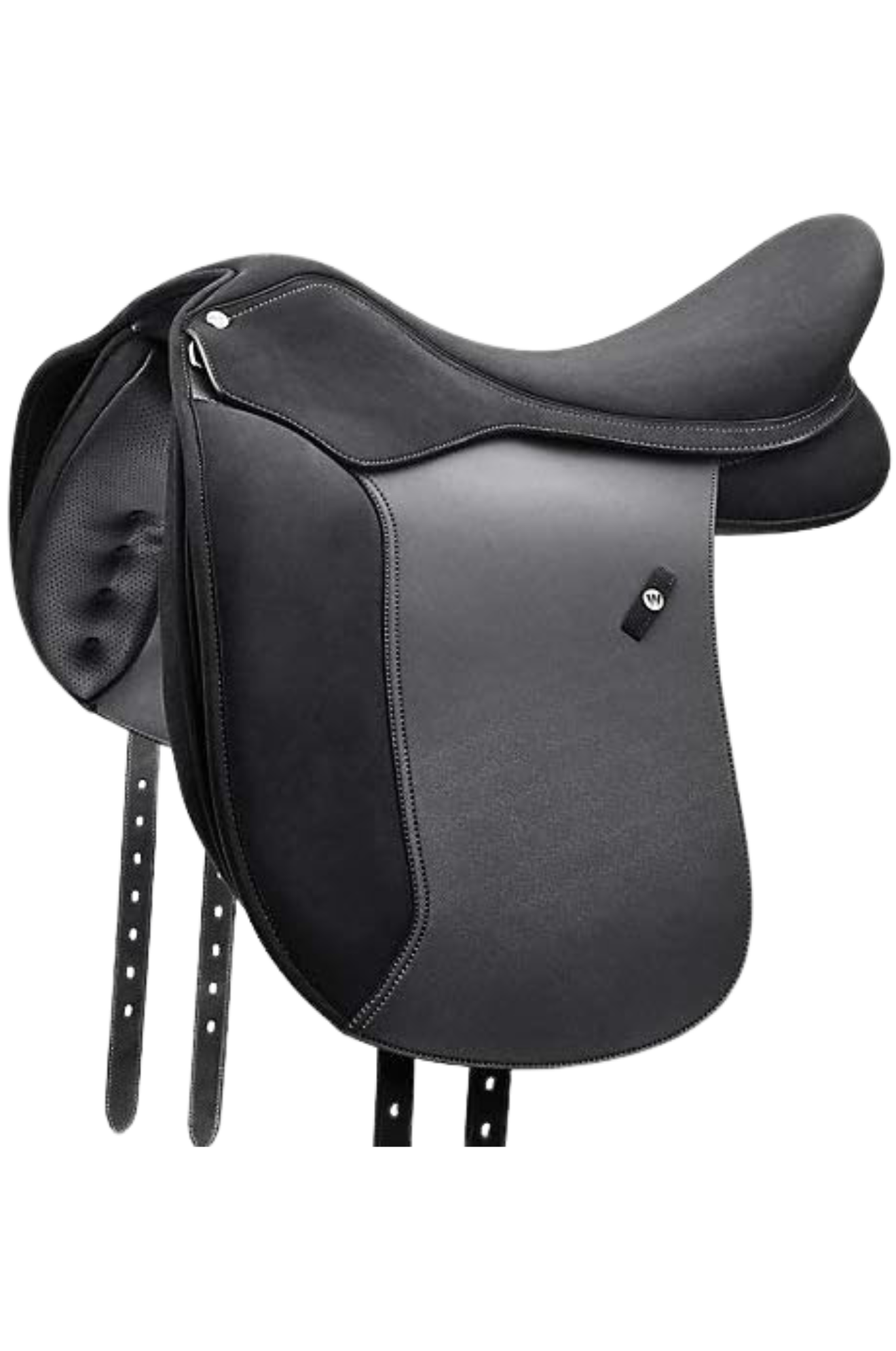 Wintec(R) Pro WIDE Dressage Saddle with HART NEW AND IMPROVED! Designed especially for you and your wide horse to train or compete at any level in total comfort. Feel supported in the super-soft, deep seat of the Wintec Pro Wide Dressage and experience total luxury in a top-of-the-range dressage saddle. Experience exceptional stability and support with a grippy material on the seat and refined design to provide a close contact feeling allowing effortless leg communication for the delivery of aids. For your wide horse, they will enjoy the super-soft panels mold in and around their muscles, hugging their unique conformation and freeing them to move whether training or competing in dressage. This saddle features all the benefits of Horse and Rider Technology... we call this HART. Features: Protective Cushioning: CAIR Cushion System Precision Custom Fit: EASY-CHANGE Fit Solution Ergonomic Flex: Elastiflex Tree Free Movement: Performance Panel Technology Superior Rider Performance: Comfort Seat Technology More Information about HART: The revolutionary CAIR Cushion System replaces traditional fillings in your saddle panel with air. There are two independently sealed air cushions within each saddle panel. The concept of air, as the ultimate in cushioning for your horse, is simple. Air, being a fluid medium, will constantly adapt to the horse's working muscles. This means that your weight will be distributed evenly across the entire length of the cushion, virtually eliminating pressure points. This results in freer movement, better carriage, and a happier horse. Together the EASY-CHANGE Gullet System and the EASY-CHANGE Riser System offer a total fitting solution for your horse's absolute comfort and your peace of mind. All adjustments are measurable, symmetrical and completely reversible, ensuring total confidence in your ability to custom fit your saddle to your horse's changing shape for optimal comfort and performance. EASY-CHANGE Gullets and Risers are sold